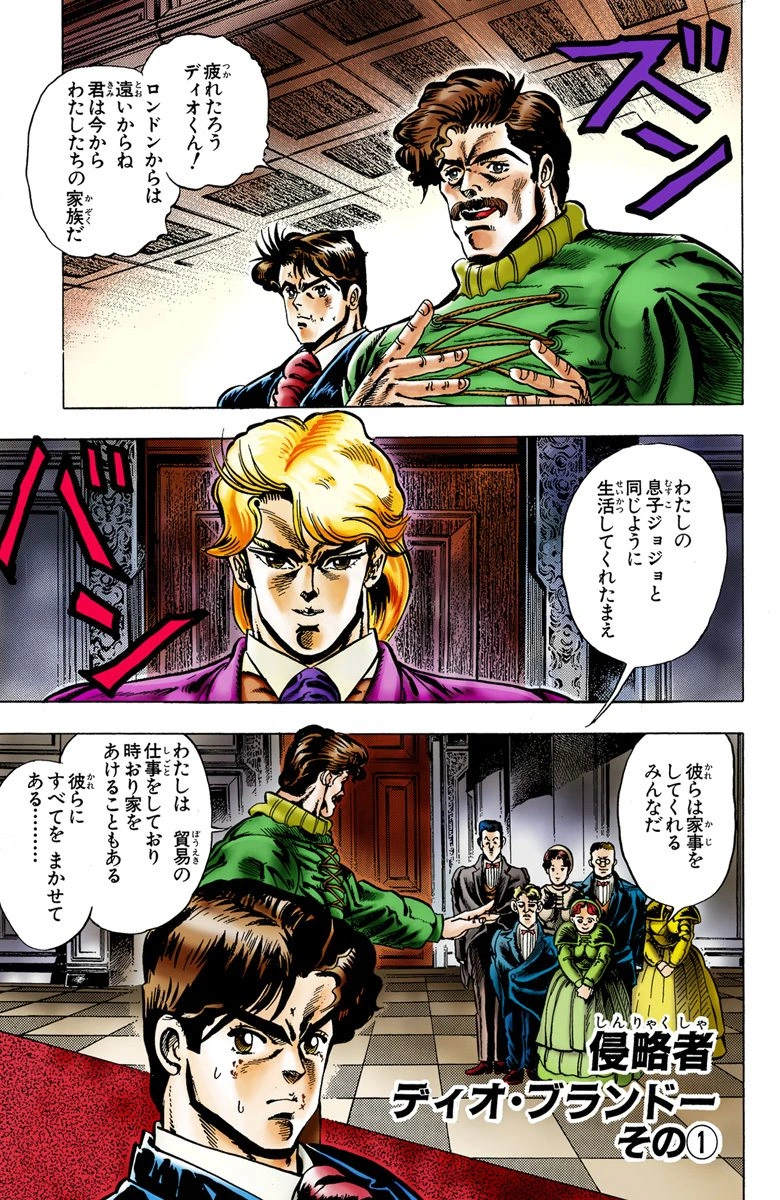 Cuando Jonathan intenta tomar el equipaje de Dio para subirlo a su habitación, este último toma su brazo y se lo retuerce, argumentando que su mano está llena de baba de perro. Luego de darle un fuerte golpe a su estomago, Dio le advierte a JoJo que le gusta ser el número uno, que odia que se burlen de él y que mantenga alejado a Danny. A partir de allí, la vida de Jonathan se torna desagradable.