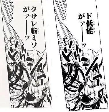 Tanto en la publicación original en la Weekly Shōnen Jump del Capítulo 456 como en el Volumen 49 , Fugo llama a Narancia algo parecido a "imbécil retrasado" (ド低脳, , "imbécil retrasado" ? ) después de apuñalarlo con el tenedor, en la edición Bunko el insulto fue cambiado para que le diga a Narancia que tiene "mierda por cerebro" (クサレ脳ミソ, , kusare nō miso ? ) , frase la cual se popularizó entre los fanáticos japoneses por lo rídiculo que suena.