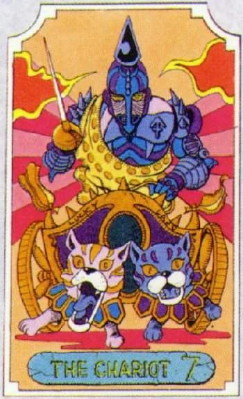 Representa la Carta del Tarot El Carro, que simboliza la invasión y la victoria. El grito de batalla de Silver Chariot es "HORA HORA HORA".