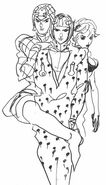 - Su estilo de cabello, así como su ropa, cambian durante el transcurso de la Parte 5, siendo el cambio más notorio su corte de cabello.