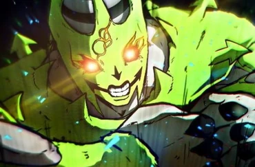 Purple Haze is a short range humanoid stand that has little capsules on its knuckles that, once broken, can go around five meters in daylight, infecting all living creatures within this space with an incredibly potent virus that basically melts the victim's body in less than thirty seconds. The virus is airborne and simple going into contact with it will infect you. It's so potent, Fugo can not even control this virus, refusing to use this stand unless he needs to 100%.