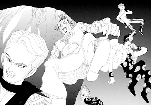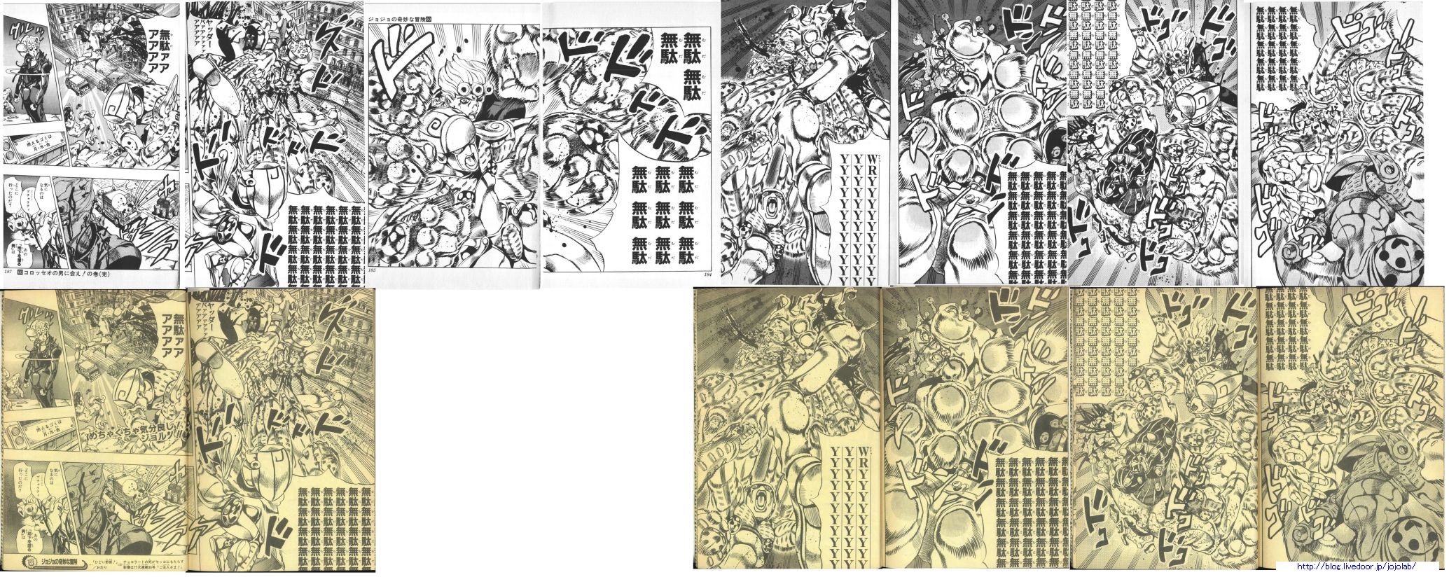 - В релизе тома, длинное избиение Чокколаты дополнено двумя экстра страницами, нарисованные Араки. Этот двух-страничный разворот (на илл.) не присутствовал в версии Weekly Shonen Jump.