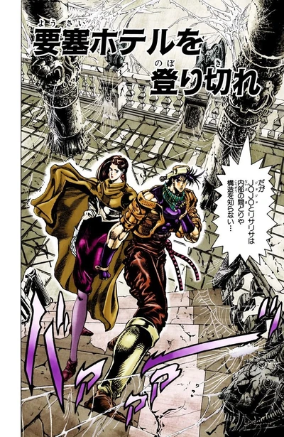 «Выбраться из укреплённого отеля», при публикации в журнале WSJ «Лиза Лиза и ее Шелковый танец», — 50 глава в части «Боевое стремление», а также 94 глава во всей серии манги Невероятные приключения ДжоДжо.