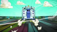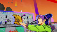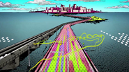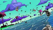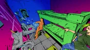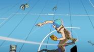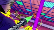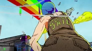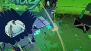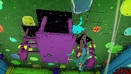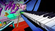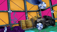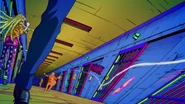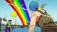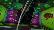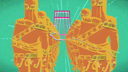 После быстрого стирания, сделанного бабочками, вид переключается на главную троицу, демонстрирующую свои способности на абстрактных фонах. Эрмес наклеивает наклейку на гигантскую пулю, дублируя ее, когда она бежит по ней и перепрыгивает с одной пули на другую. Затем в поле зрения появляется Ф.Ф. в сопровождении нескольких планктонов, которая быстро прицеливается и стреляет пальцем. Наконец, Джолин проносится мимо и принимает позу. Затем троица бежит вперед по мостам из струн, и сцена переключается на вид Уэзер Репорта и Джолин, сражающихся с неизвестным врагом, стреляющим в них в большой комнате. Затем Джолин бежит по воде, когда из воды выпрыгивают десятки планктонов. Планктон превращается в ДИСКи, что позволяет перейти в ангар, полный ДИСКов.