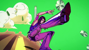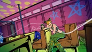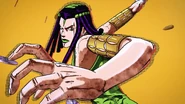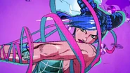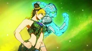 Фон становится черным, оставляя на экране только звезду, затем камера быстро летит назад через решетку, в которую заглядывают Джотаро и Джолин. Затем кадр переходит к виду Каменного кулона, привязанного к ДИСКу, а затем над ним смыкается кулак. Джолин стоит по колено в воде на фоне ночного неба, усеянного звездами, и сжимает кулаки, пока не освобождается от наручников, с решительным выражением в глазах. Затем Джолин встает и вызывает Stone Free.