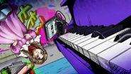 Снова появляется нить, когда несколько экранов вспыхивают в быстрой последовательности, чтобы перейти к виду камеры Джолин, в которой она спорит со своим сокамерником, а камера вращается вокруг нее. После еще одного быстрого перехода Джолин можно увидеть посреди коридора в уменьшенном виде и с несколькими охранниками, стреляющими в нее из-за зарешеченных ворот. Камера пролетает под противоположными воротами, и на мгновение становится виден Каменный кулон, после чего экран заполняется спрайтами и мотивами, напоминающими традиционные комиксы.