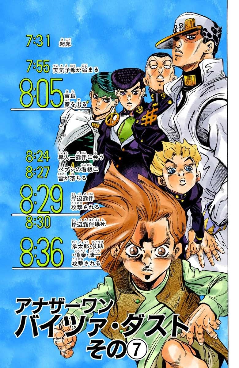 Another One Bites the Dust, Part 7 (アナザーワン バイツァ・ダスト その⑦ Anazāwan Baitsa Dasuto Sono 7), originally There's No Time Left! (もう時間がない! Mō Jikan ga Nai!) in the WSJ release, is the one hundred fifty-ninth chapter of Diamond is Unbreakable and the four hundred twenty-fourth chapter of the JoJo's Bizarre Adventure manga.