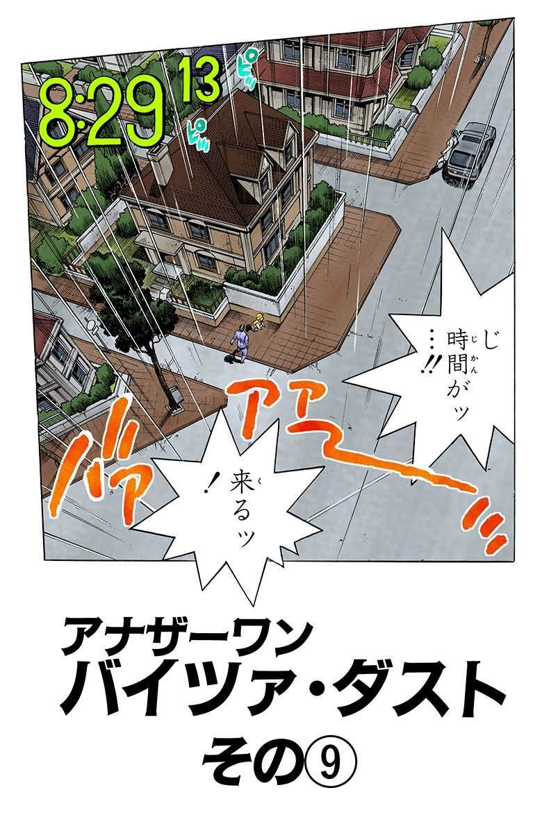 After this, Hayato reveals that he's been waiting for Josuke to wake up and make his way to the location where Kira was at the moment, as he did in the previous time loop. As Kira realizes that he just gave away his name to both Josuke and Okuyasu, and that Bites the Dust will only trigger 30 minutes from then, he is forced to retract Bites the Dust in order to protect himself after getting attacked by Crazy Diamond. As the time reaches 8:30, Rohan spots Koichi and Jotaro and goes to greet them. As Josuke prepares for a final showdown with Kira, Kira once again recites that he only wishes to live a quiet life with a vegetative soul.