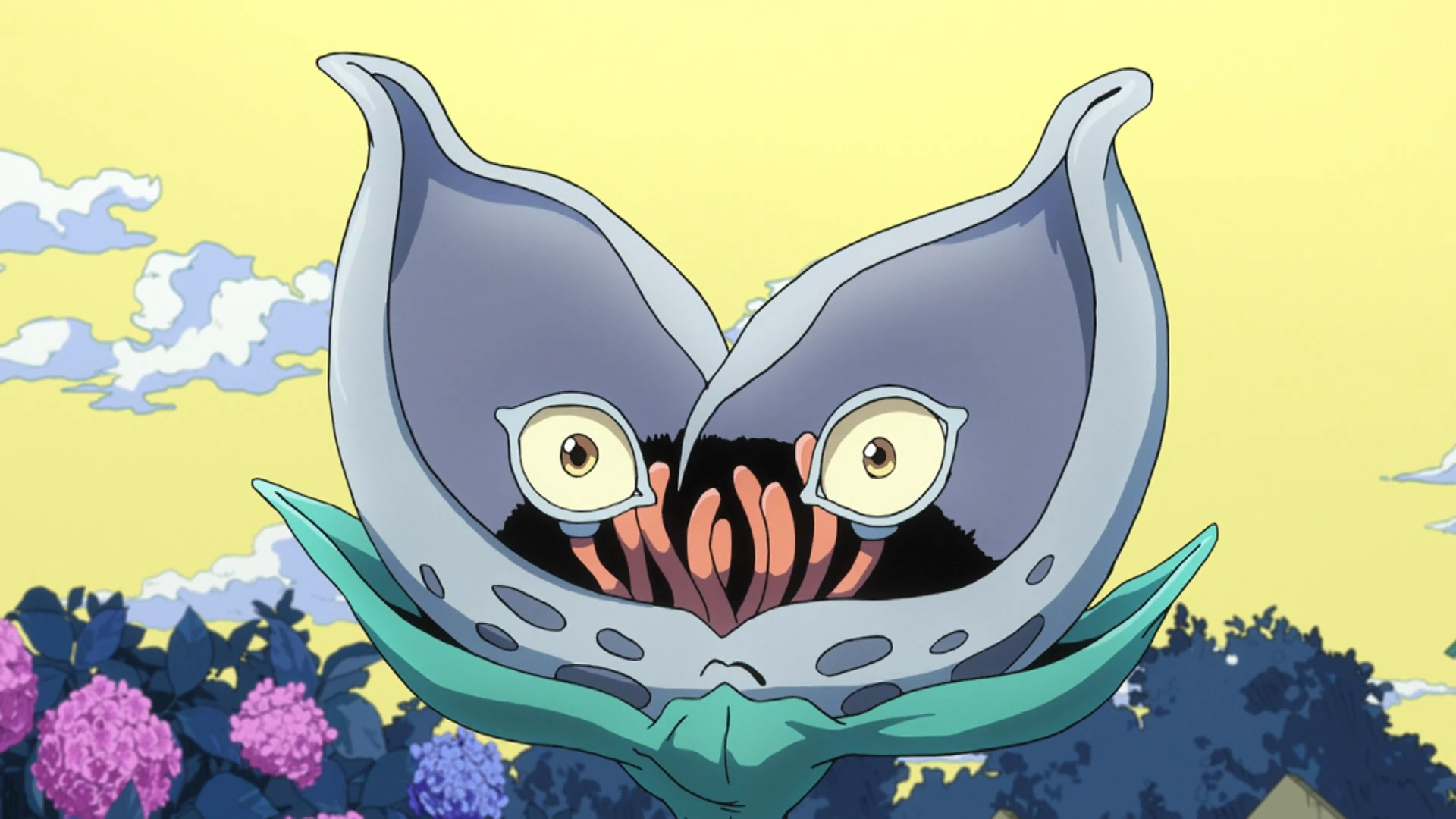 'Kosaku Kawajiri' begins to develop feelings for Shinobu. He was even clearly troubled when she was attacked by the cat-plant. When I read the manga, I told myself that after this incident, Kosaku would question his feelings about his new family, but that wasn't the case at all. In the end, his every action was conditioned to ensure his survival. (laughs). However, he was clearly disturbed by his own emotions, that's a fact. The episode's direction was intended to make the audience doubt Kosaku's true nature. The cat-plant that appears in this episode actually has three evolutionary stages. You can differentiate them by the features on its face. I hope you'll be able to see these differences. |