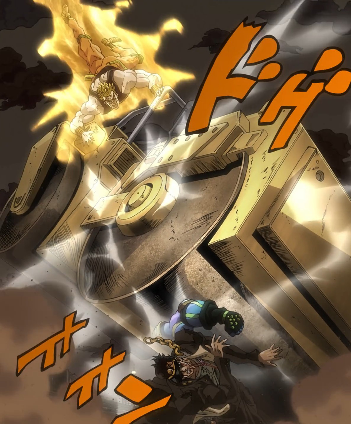 DIO drops a steamroller on Jotaro