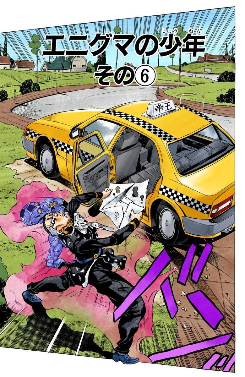 Enigma Boy, Part 6 (エニグマの少年 その⑥ Eniguma no Shōnen Sono 6), originally Completely Unforgivable! (ぜってーゆるさねえ! Ze ttē Yurusa Nē!) in the WSJ release, is the one hundred forty-fourth chapter of Diamond is Unbreakable and the four hundred ninth chapter of the JoJo's Bizarre Adventure manga.