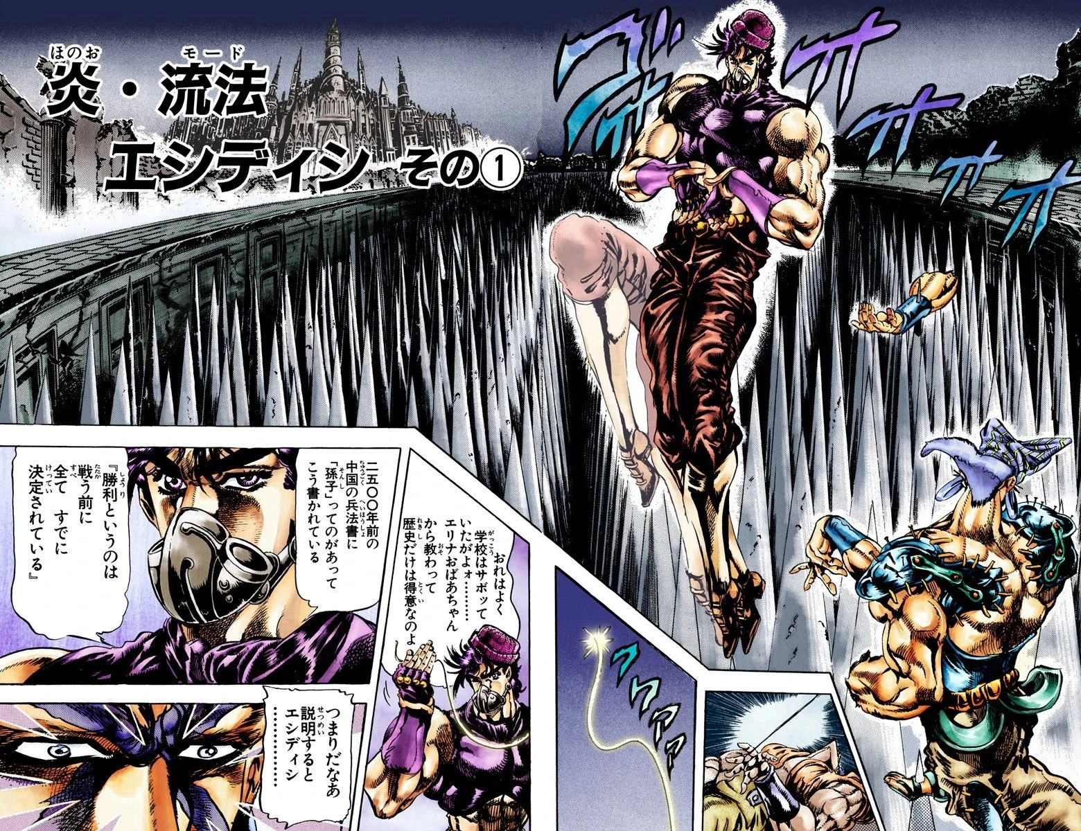 Flame Mode Esidisi, Part 1 (炎・流法 エシディシ その① Honō Nagare Hō Eshidishi Sono 1), originally The Disturbing Esidisi (エシディシの不気味 Eshidishi no Bukimi) in the WSJ release, is the thirty-fourth chapter of Battle Tendency and the seventy-eighth chapter of the JoJo's Bizarre Adventure manga.
