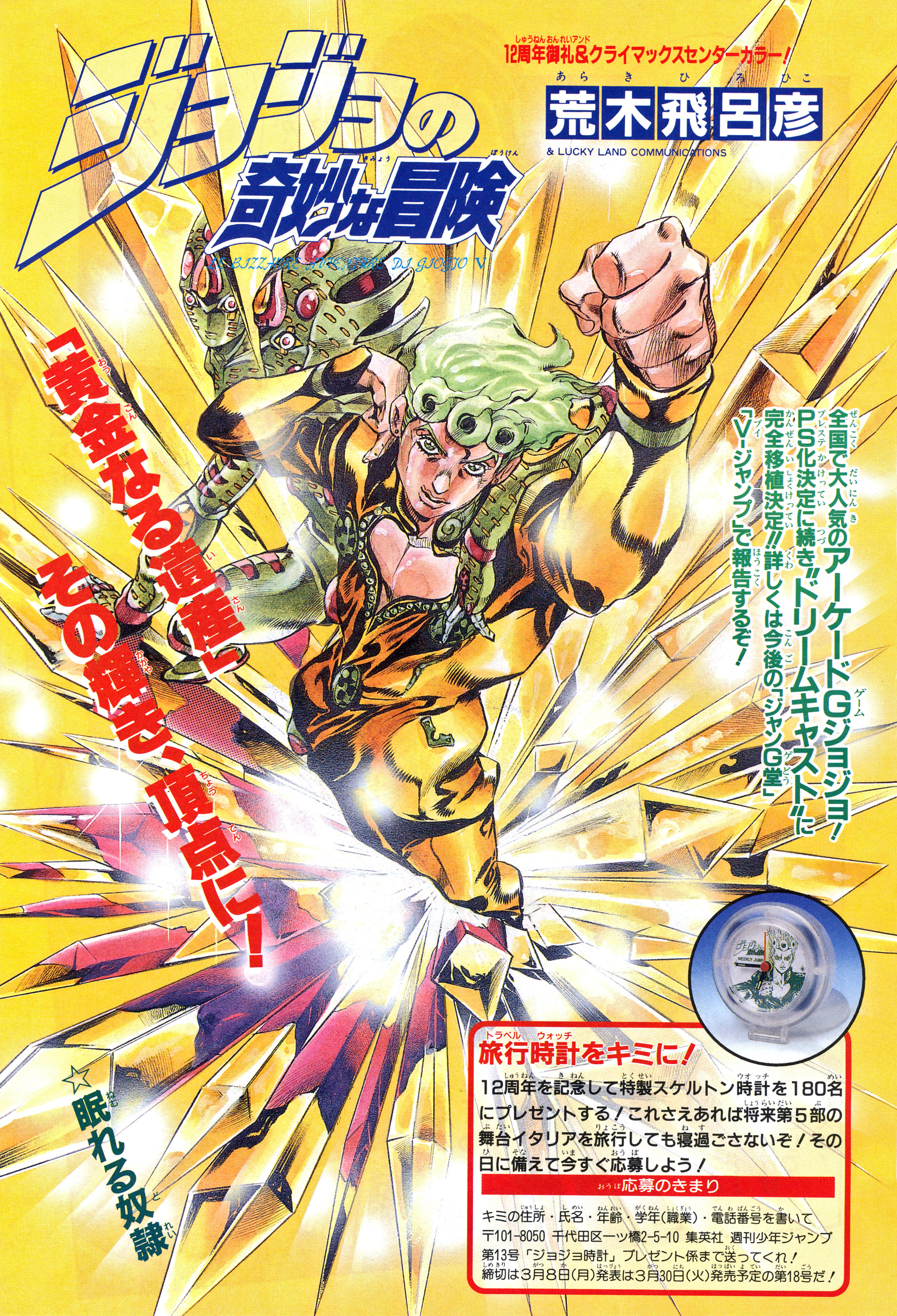 With Diavolo's defeat and everything in Rome returning to normality, Mista suddenly reminds everyone that Bucciarati is still in the Coliseum and insists they should heal him. Giorno is deeply disturbed at the thought of revealing the truth to his companions, but the ghosts of Bucciarati, Abbacchio and Narancia reassure him, as they have won over fate. Giorno then sees the Arrowhead fall before his feet.