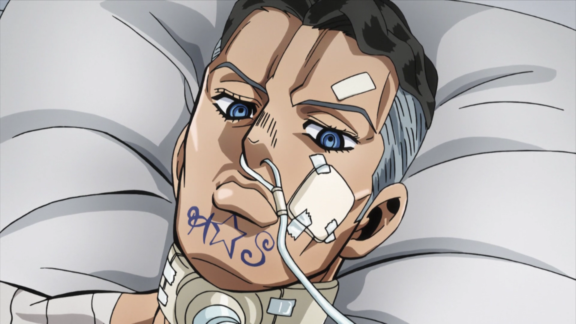 Josuke is angrily reprimanded by the girls and talked down to by Yuya, who demonstrates his enhanced sense of smell by pointing out a rotten peach, detecting which girl is on her period, and smelling the adrenaline caused by someone's anger. Yuya tries to determine which of his fangirls is the angry one, only to learn that it's actually Josuke, who'd been drinking from Yuya's IV bag to replenish himself. Josuke reveals that he has enough strength for Crazy Diamond to punch faster than Highway Star can run, and forces Yuya to release Rohan before preparing to beat the smug thug up. Yuya and co. point out that it would be cowardly for Josuke to attack a crippled man, at which point Josuke reveals that Crazy Diamond already healed him. Josuke beats Yuya senseless and throws him into the fountain right outside the hospital entrance, prolonging his stay; the narrator explains that Yuya is now unable to use Highway Star or else Josuke will kick his ass. Back at the tunnel, Josuke uses Crazy Diamond to heal Rohan, who condescendingly states that he would've preferred dying. Koichi takes his dog Police out for a walk to end the day, while back at the Kosaku household, Shinobu notices a stray British Blue cat that wandered into their basement.