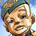 Meanwhile in the laundry room, Jobin ponders on the situation. Although he is certain that Poor Toom is aiming to kill Josuke, he cannot guess what Tom's real plan is. Jobin is suddenly approached by his son Tsurugi, accompanied by Iwasuke.