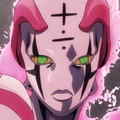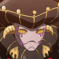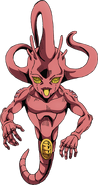 | Instead of killing Bucciarati, Doppio decides to pass off as a harmless civilian to "help" carry Bucciarati to his destination. Diavolo enhances the ploy by deducing that Bruno is now a corpse who can only see spirits and emitting a bit of his own soul - Bruno is fooled into thinking Doppio is Trish. The two enter the Colosseum where they are confronted by Polnareff from the second floor. Polnareff eventually sees Doppio as a suspicious person, and both him and Diavolo remember Polnareff's attempt to investigate the Arrows in Italy only to be nearly killed by Diavolo in person. Polnareff forces Diavolo's hand, forcing the Boss to come out and confront him. Diavolo gets the better of Polnareff a second time, and Polnareff is forced to pierce Silver Chariot with the Arrow in front of Diavolo to protect it. Diavolo kills Polnareff and takes the Arrow. Looking down on the first floor, he sees Team Bucciarati coming to their leader and plans to kill them, but he then sees a new Stand in front of him. | |||