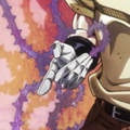 | Injured, the evil guard falcon Pet Shop unleashes the full power of his ice Stand Horus. In the humid sewer, Pet Shop gains the advantage and traps Iggy with a fast ice creation, forcing the dog to tear off his paw. Pursued into the Nile, Iggy dives at the bottom of the river to hide, but Pet Shop's falcon consitution allows it to swim. It eventually spots the small sand dome Iggy has created as a shelter and tries to bury it in ice. When Iggy tries to dig deeper, he sees that Pet Shop has outmaneuvered him, preparing to spit an ice spike. As a last resort, Iggy leaps at Pet Shop and bites his beak, the ice spike then killing Pet Shop. The sand dome colllapses and Iggy almost drowns, but he is saved by the boy he saved earlier. Found by Kakyoin and taken care of, Iggy regroups with the Joestar and leads them to DIO's Mansion. | |||