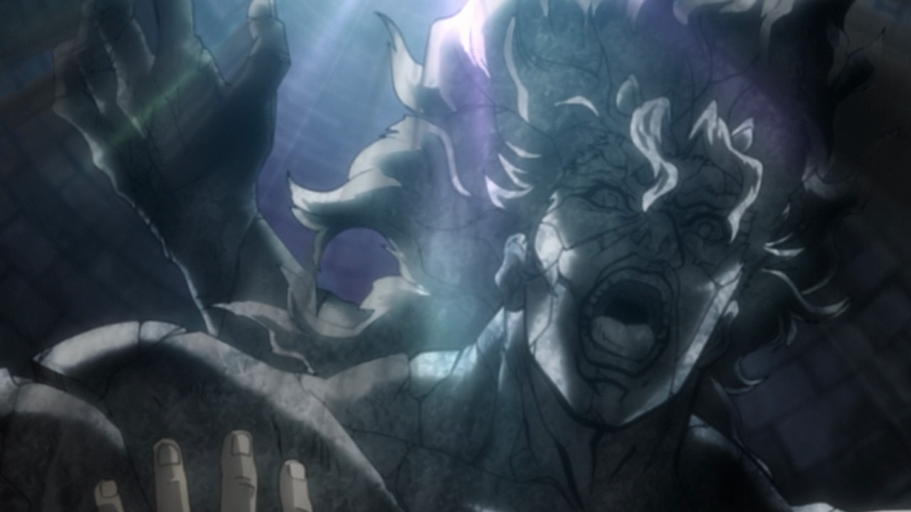 As a last-ditch effort, Santana attacks Joseph, and the two go flying into a well. But then Joseph reveals that he exactly timed the jump so that the sunlight would reach the water of the well and get reflected. Being hit by sunlight from two directions, Santana turns into stone and is defeated.