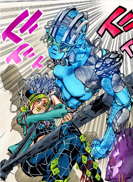 In combat, Jolyne uses various abilities featured in Stone Ocean.
