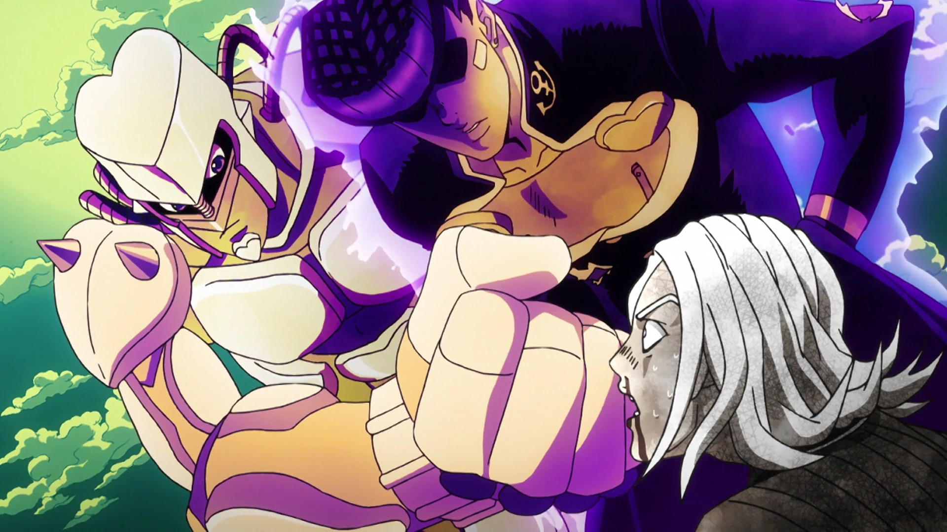 - Removed Highway Star popping through Terunosuke's taxi door and grabbing Josuke's paper. The anime had Highway Star on top of the taxi instead.