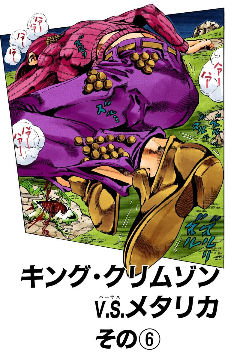 He only finds a random child, which has his mouth sewn shut and whose clothes have been stolen. As the bunch of kids on the beach thank Abbacchio for his help and go back to their game, King Crimson swiftly punches through Abbacchio's stomach.