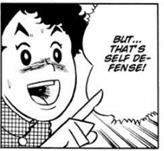Another one of Koichi's primary characteristics is his courage and associated virtuousness. As revealed by Heaven's Door, Koichi is described as cowardly, but courageous when push comes to shove.[17] True to that assertion, Koichi is very prone to express anxiety, fear, and despair at various setbacks, such as his battles against Yukako,[18] Rohan[19] or Sheer Heart Attack. Terunosuke states that when Koichi is scared he blinks twice.[20] In addition, Koichi mentions during the Atom Heart Father arc that he has claustrophobia.[21] Still, Koichi soldiers on and braves danger despite his fears.