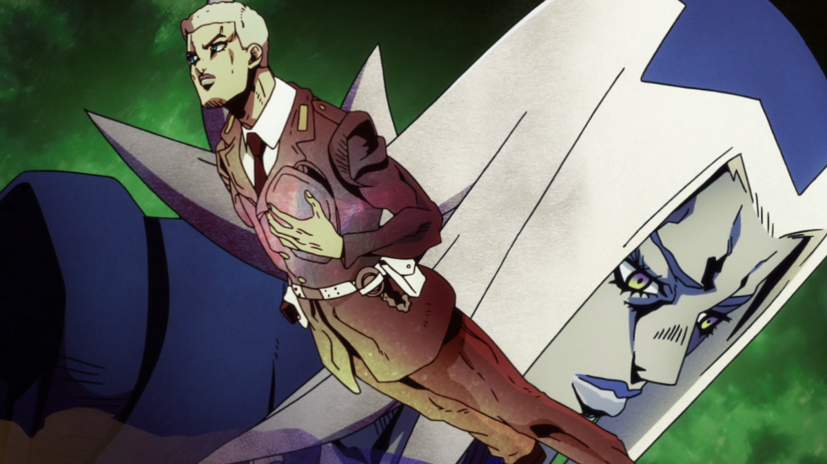 With that, they're able to make a mold of those features and continue their efforts to defeat The Boss. Abbacchio is last seen as an apparition with his partner, watching over his friends from the sky. Before the two walk away, he is told that he's done a fine job and that his friends have sensed his will to seek out the truth.