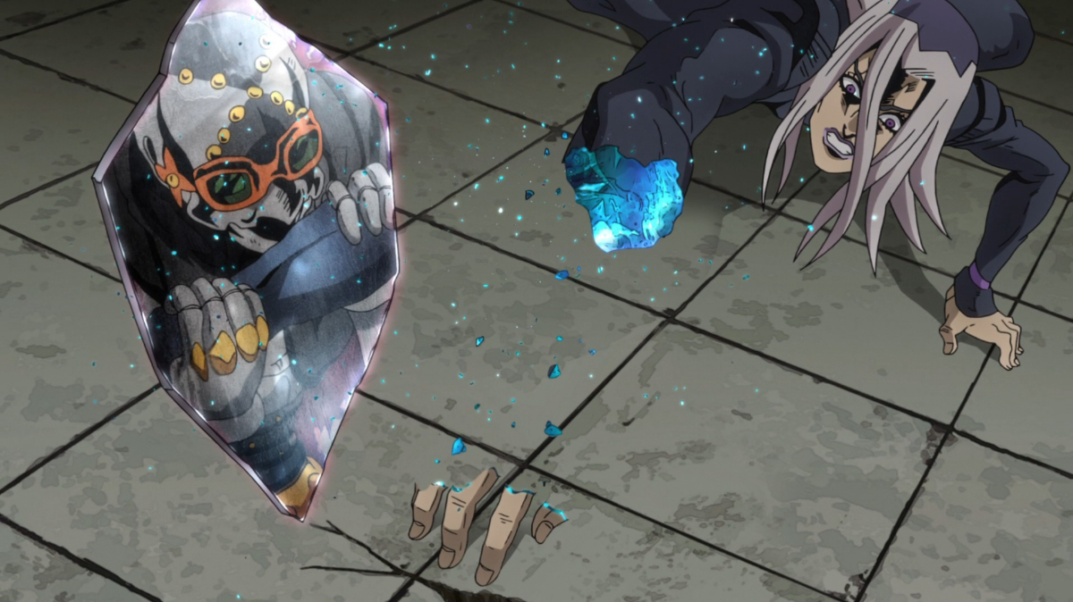 While still in Venice, Narancia claims he is being attacked by an enemy Stand, and Abbacchio follows his apparent instructions to use Moody Blues to reveal their attacker. However, Narancia's strange actions leave Abbacchio confused and somewhat angry. Outside of his awareness, Narancia and Giorno were indeed fighting two enemy Stand Users.