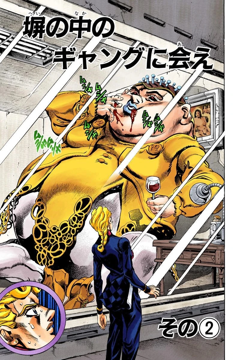 Meet the Gangster Behind the Wall, Part 2 (塀の中のギャングに会え その② Hei no Naka no Gyangu ni Ae Sono 2), originally Body Check! (ボディ・チェック! Bodi Chekku!) in the WSJ release, is the tenth chapter of Vento Aureo and the four hundred forty-ninth chapter of the JoJo's Bizarre Adventure manga.