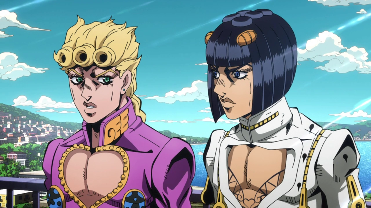 - Instead of meeting up in front of the prison holding Polpo, Giorno and Bucciarati are seen walking together through various streets until they reach the prison.