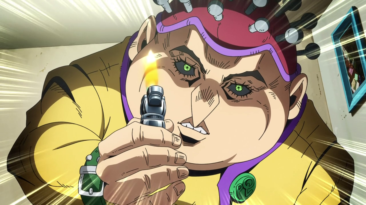 - In the manga, after the lighter goes out, Giorno remembers Polpo's words about being untrustworthy and remarks its only been an hour since obtaining the lighter.