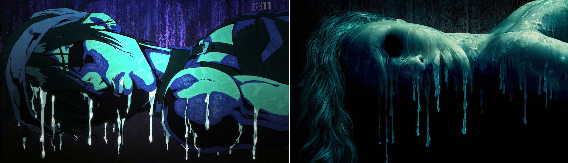 - The imagination shot of Narancia dissolving is a reference to the poster of the 2005 horror movie House of WaxW.