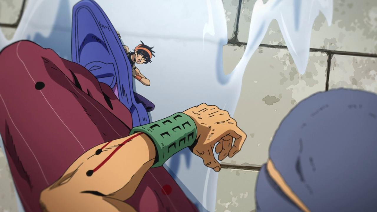 - Fugo brings Narancia into the same restaurant the team is seen hanging out in Episode 5 when they are first introduced.