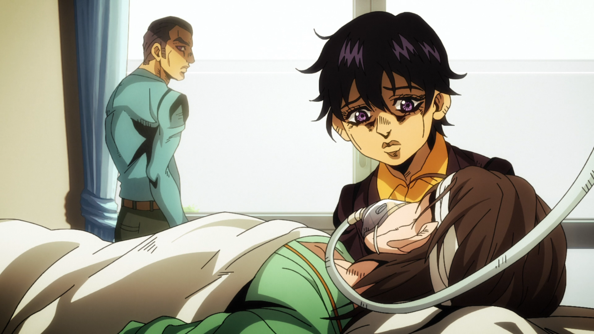 - Narancia's mother is shown in the hospital on her deathbed, with Narancia holding her hand as she passes away. Narancia and his father are next seen at her tombstone with Narancia mourning.