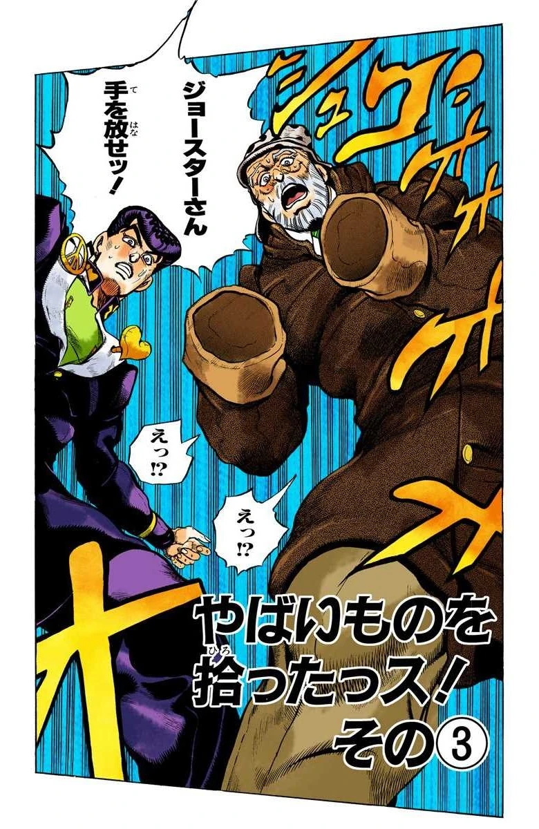 Picked Up Something Bad!, Part 3 (やばいものを拾ったっス! その③ Yabai mono o Hirotta ssu! Sono 3), originally The Crimson Rescue Method! (真紅の救出法! Shinku no Kyūshutsu Hō!) in the WSJ release, is the fifty-second chapter of Diamond is Unbreakable and the three hundred seventeenth chapter of the JoJo's Bizarre Adventure manga.