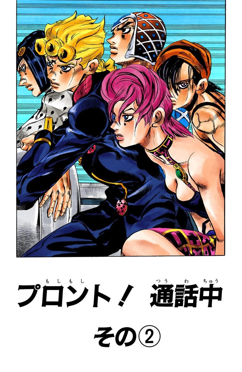 Doppio arrives near the landmark but only notices that the stela has been destroyed. However, Diavolo suspects that Bucciarati and his team have nonetheless learned something. Frustrated about this past that he cannot completely erase, Diavolo has no choice but to call the worst Passione operatives he has left, Cioccolata and Secco, for help.