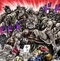 Jonathan and Speedwagon manage to fend off the zombie hoard while Zeppeli confronts Dio, demanding how many people he killed to restore his previous burnt body with the vampire cynically asking back how many pieces of bread the Ripple master has eaten. This ominous answer infuriates Zeppeli, who leaps at Dio and punches the vampire with the Sunlight Yellow Overdrive. Against all expectations, Dio resists the attack: he has frozen his own arm and the frost is enough to even gravely wound Zeppeli's arm. The vampire has countered the Ripple by freezing his and his opponent's bloodstream, for blood flow is required to conduct ripples. Dio prepares to crush Zeppeli's head with a punch, but Jonathan intervenes and blocks Dio's attack.