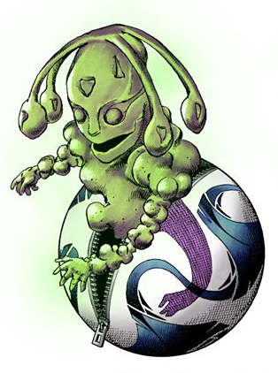 Schott Key No.2 is a small doll-like Stand made of a dark poisonous gas. It is vaguely humanoid, its head stuck to a bubbling amorphous body, with triangle shaped marks on the head and four similarly marked antennae protruding from the top of the head.