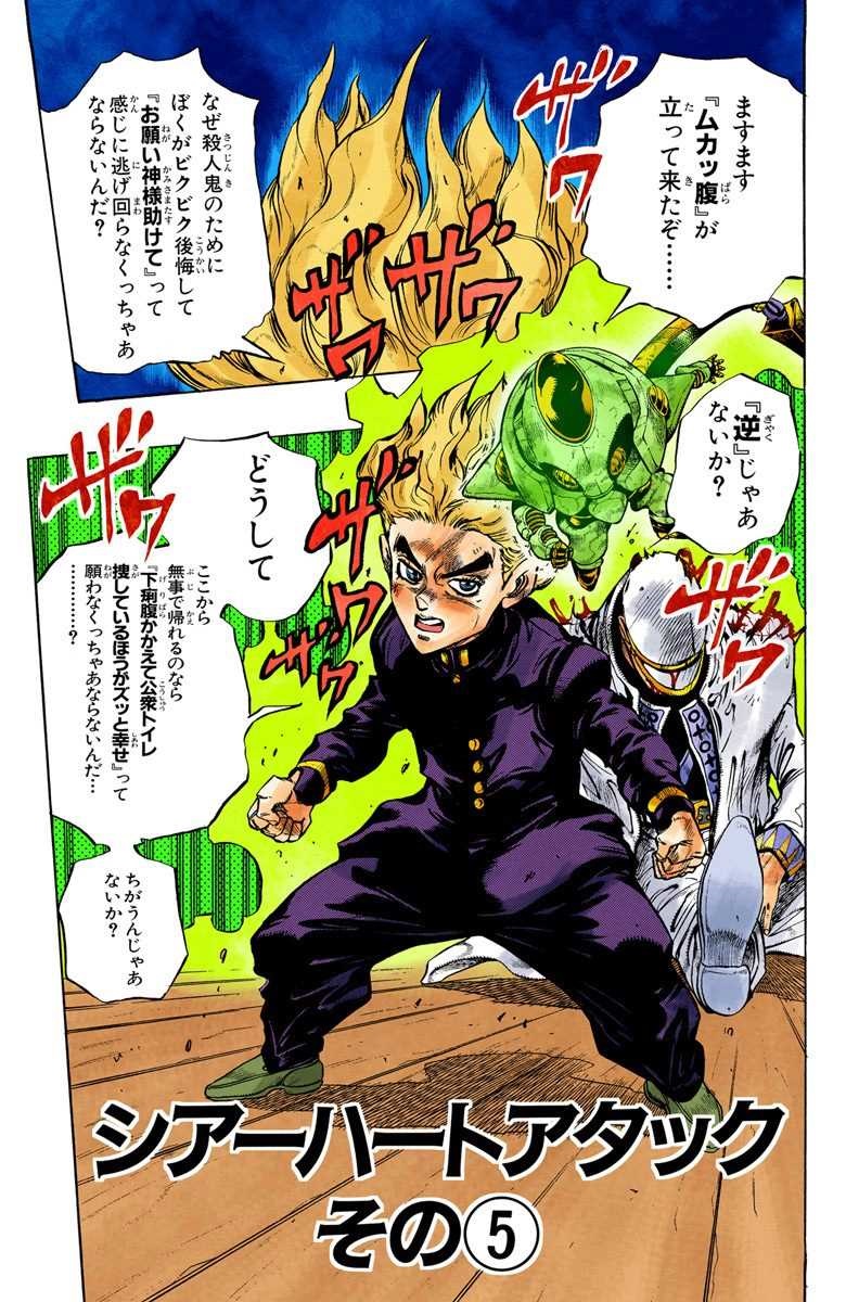 Sheer Heart Attack, Part 5 (シアーハートアタック その⑤ Shiā Hāto Atakku Sono 5), originally Give Me an Order! (命令シテクダサイ! Meirei Shite Kudasai!) in the WSJ release, is the ninety-third chapter of Diamond is Unbreakable and the three hundred fifty-eighth chapter of the JoJo's Bizarre Adventure manga.