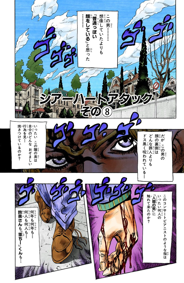 Sheer Heart Attack, Part 8 (シアーハートアタック その⑧ Shiā Hāto Atakku Sono 8), originally Feeling of Defeat...!! (敗北感...!! Haiboku Kan...!!) in the WSJ release, is the ninety-sixth chapter of Diamond is Unbreakable and the three hundred sixty-first chapter of the JoJo's Bizarre Adventure manga.