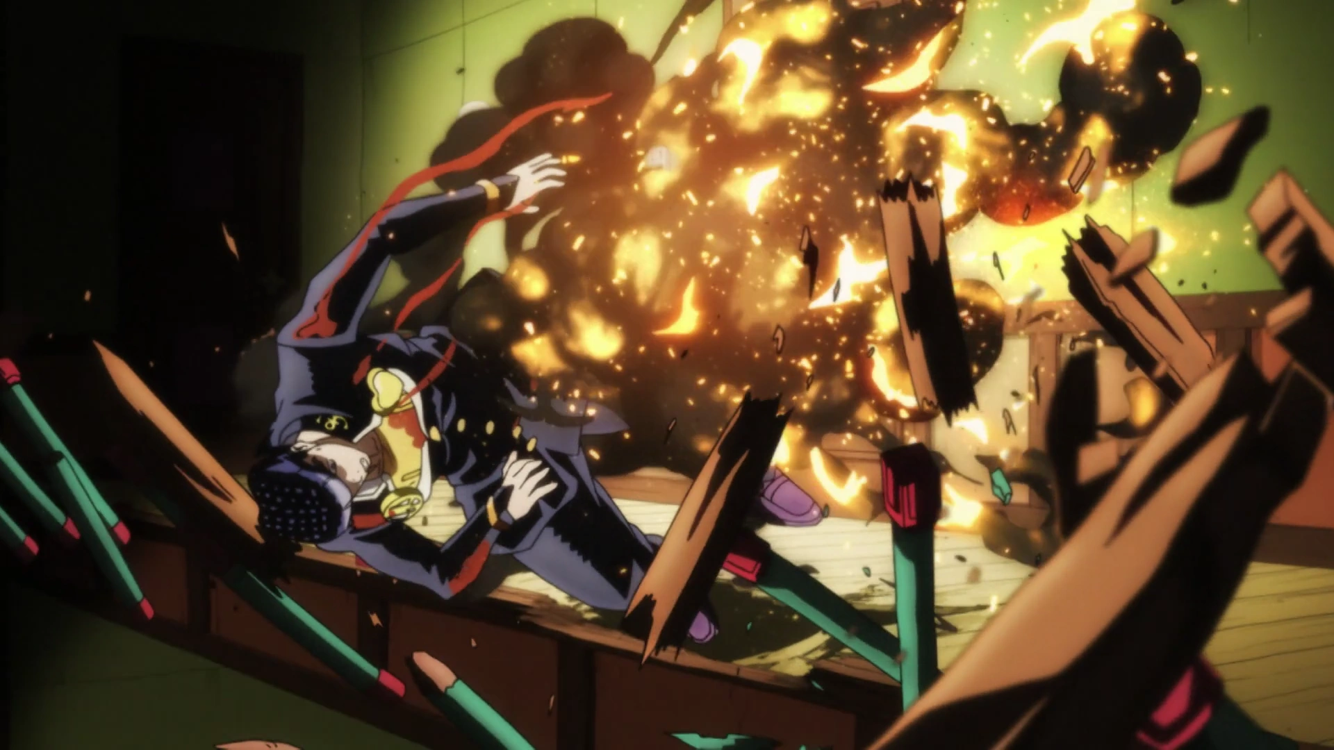 Josuke caught in an explosion, done by Killer Queen.