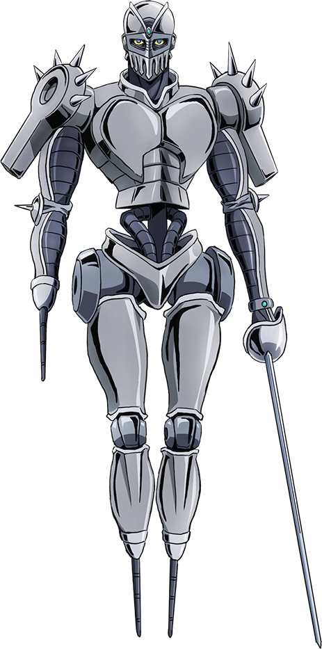 Silver Chariot is a powerful, battle-dedicated close-range Stand that primarily fights with the rapier it is equipped with.