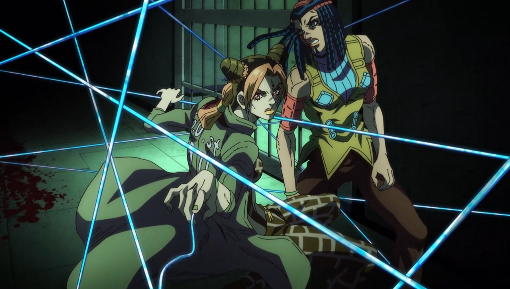 After F.F. defeats the alligator, Ermes and Jolyne find out that Maxx became an invisible zombie and escaped the pipe after his body drowned in the sewage. Maxx lures the two into the prison's mausoleum and revives several dead prisoners to get revenge on Ermes for killing him. Ermes allows herself to be attacked and uses Kiss's ability to locate Maxx. Though Maxx takes a bite out of her head, Ermes completely annihilates him before passing out from her injuries. Jolyne uses Maxx's discs to review his memories before she is detained and taken to the prison's Disciplinary Wing.[1]