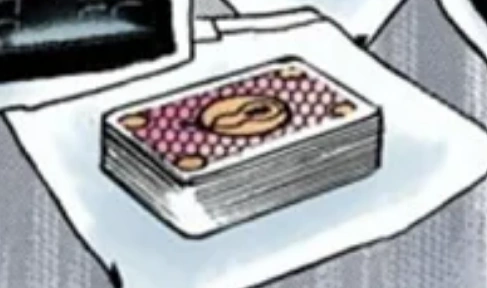 Space Trucking can store objects or people between cards manifested by the Stand itself as if nothing were there. If the card possessing the object is turned over or revealed, the stored entity is released. The limit of the size for a contained object is unknown, but the hidden objects can be considerably larger than the card itself. By far Kaato is only seen to use Space Trucking to store: her phone[1], one of the chairs in the Higashikata House[2] or even her dying grandchild[3]. Speaking of the last use, it seems like people inside Space Trucking's cards can still be alive since it also holds air inside.