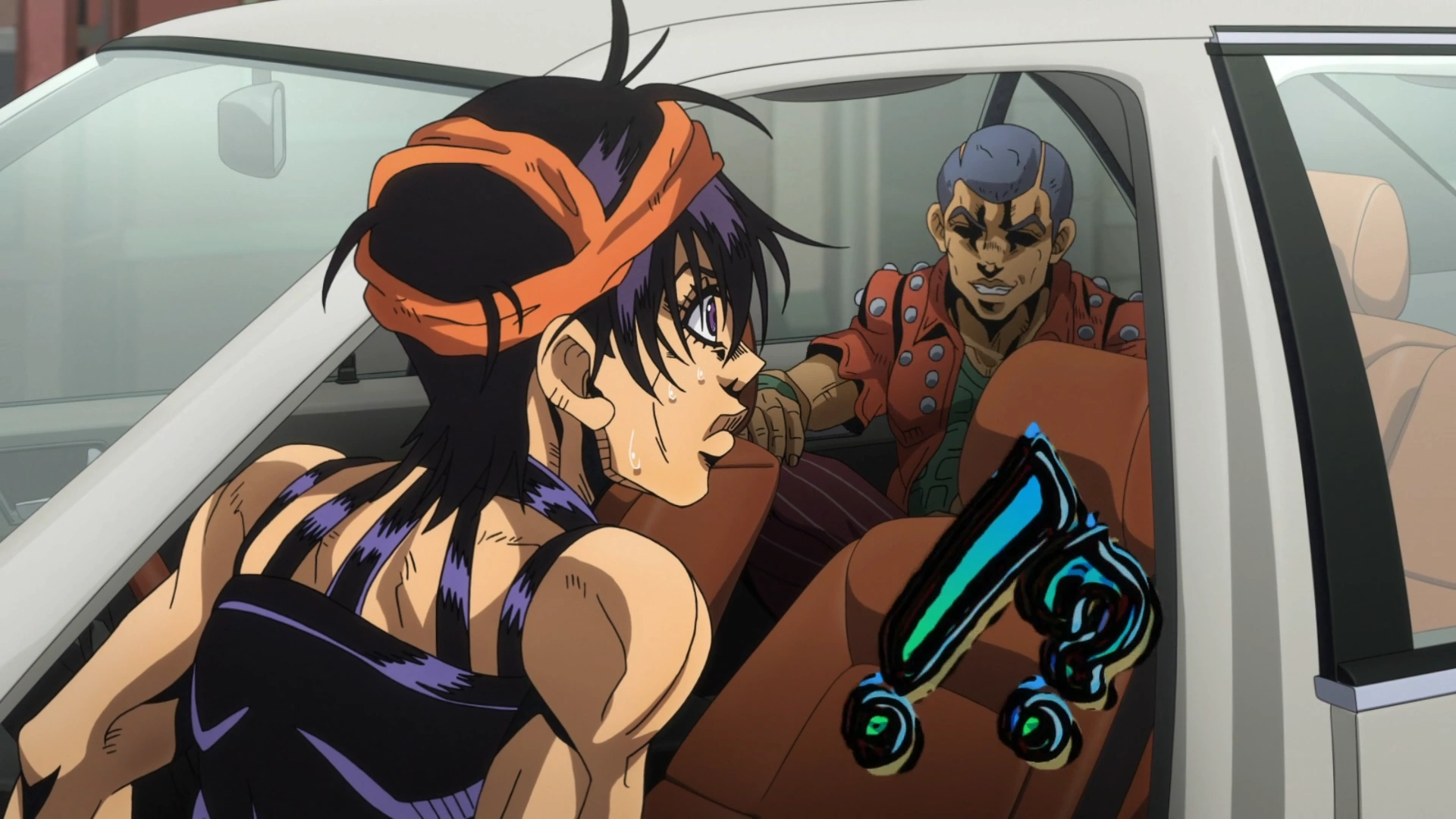 - Narancia kicking the car and yelling can still be heard while Formaggio monologues.