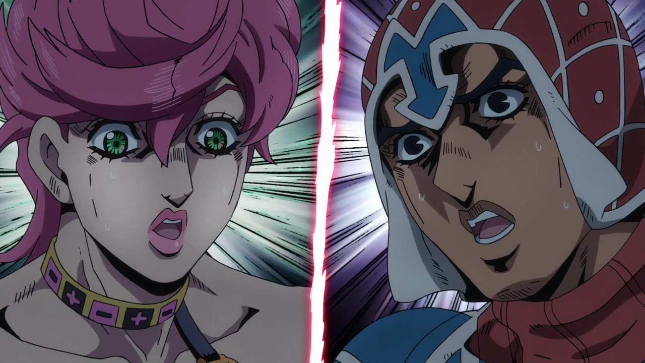 - The group recognizes Diavolo's face after moving into position by the entrance rather than before like in the manga.
