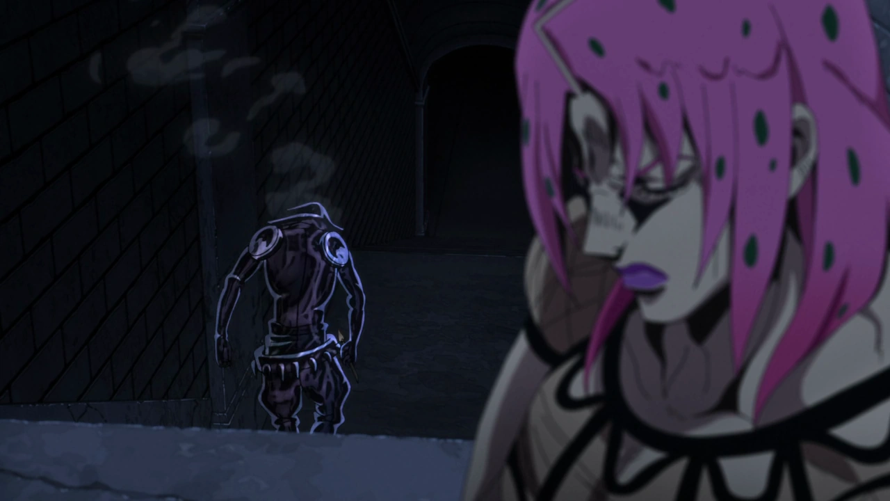 - Bucciarati (in Diavolo's body) is shown running up to the Colosseum before reaching the entrance.