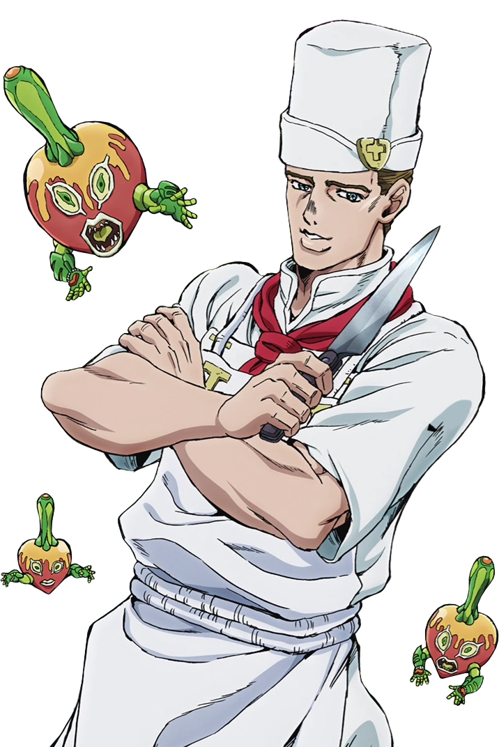 Tonio is a professional chef of Italian origins working in an Italian restaurant named Trattoria Trussardi, at the edge of the town of Morioh. He is also a Stand User who uses his Pearl Jam to enhance his cooking.