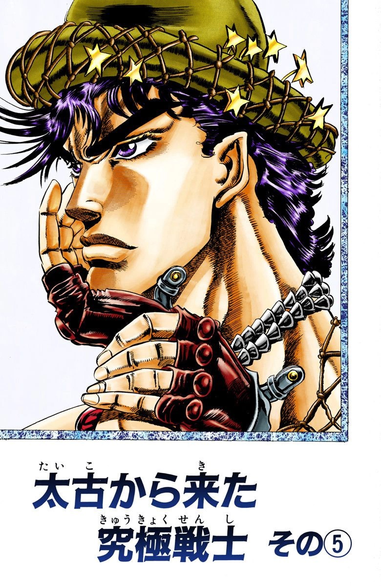 Ultimate Warriors from Ancient Times, Part 5 (太古から来た究極戦士 その⑤ Taiko kara Kita Kyūkyoku Senshi Sono 5), originally Qualification of a Hero (ヒーローの資格 Hīrō no Shikaku) in the WSJ release, is the twenty-fifth chapter of Battle Tendency and the sixty-ninth chapter of the JoJo's Bizarre Adventure manga.