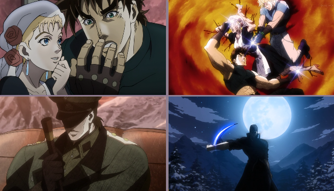In the first part, Joseph and Suzie Q have more interaction than in the manga. They are a future couple after all, we wanted to show them being more intimate. The episode doesn't really have any signature scene, but you'll notice the application of a red filter in the shots with Suzie Q possessed by Esidisi. It's very difficult to create tension in an action scene in broad daylight, but the filter adds a little something. The layout is also very JoJo; I'm thinking about the teens Kars slices up in their car, or Messina's pose. The goodbye to Suzie Q is also polished a lot; in here she tosses a pebble with an authentic little girl's throw that doesn't go far... (laughs). Everything is in the details. |